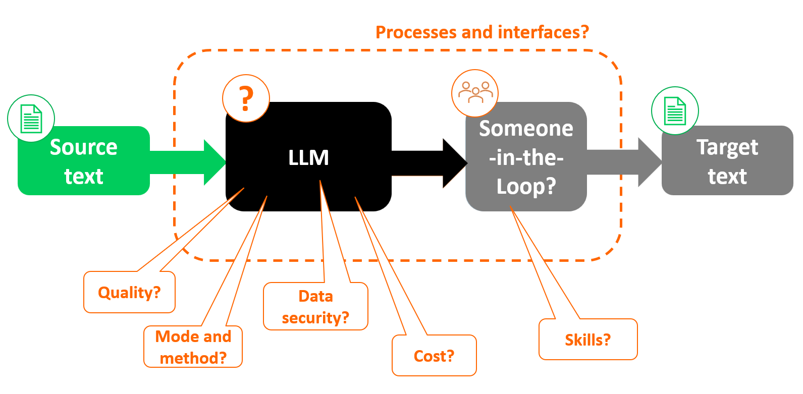 It requires clear decisions: does my existing system fit, do I just want to introduce classic MT and/or LLMs – and in which stage of the process? What content is suitable for MT? Which quality standards and pricing rules apply? And how do existing processes and skills need to be adapted?